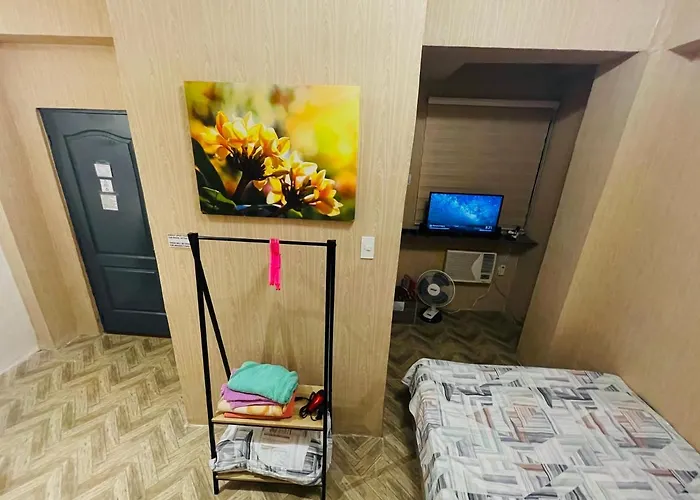 寝室1室のJt Residences Qc Sanitize Games Fiber Internet Netflix Thousand Cable Tv Hotel Quezon Ave マニラ市から歩いて5分離れたフィッシャーモールなどの観光スポットに近接しています。